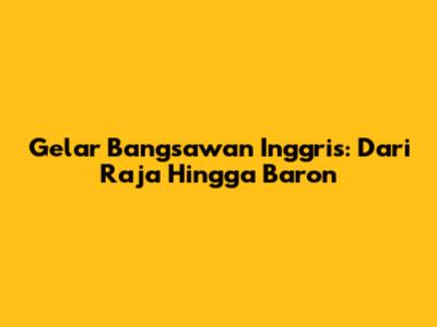 Daftar Lengkap Gelar Bangsawan Inggris