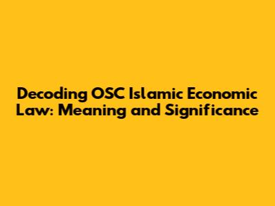 Decoding OSC Islamic Economic Law: Meaning And Significance
