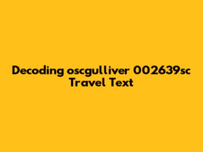 Finally, we have "travels text." This part seems more straightforward. It suggests that the preceding elements are related to travel information. It could indicate that the entire string is associated with travel itineraries, blog posts, or notes. This is our key to placing everything in the correct context. The term "travels" indicates the subject is indeed related to journeys or trips. The term "text" could refer to textual data like descriptions, notes, or documentation pertaining to those travels. It tells us that whatever "oscgulliver" and "002639sc" represent, they are linked to written information concerning travel experiences. Think of it as the label on a file folder, telling you what kind of documents are inside. In this case, the label says "travels text," so we know we're dealing with textual information related to travel. This could include itineraries, travelogues, booking confirmations, or even social media posts about travel experiences. The possibilities are broad, but the key takeaway is that the information is presented in a textual format and concerns the act of traveling. This contextual clue helps us to frame our understanding of the entire phrase and guides our interpretation of the other elements.