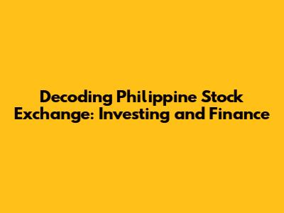 Decoding Philippine Stock Exchange: Investing And Finance