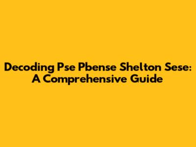 Decoding Pse Pbense Shelton Sese: A Comprehensive Guide