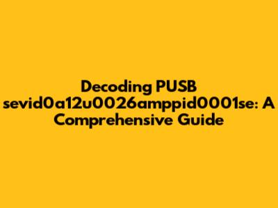 Decoding PUSB Sevid0a12u0026amppid0001se: A Comprehensive Guide