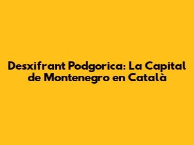 Descobrint La Capital De Montenegro En Català: Guia Completa