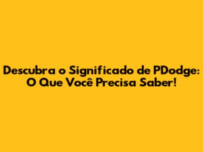 Descubra O Significado De PDodge: O Que Você Precisa Saber!