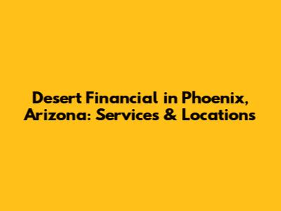 Desert Financial In Phoenix, Arizona: Services & Locations