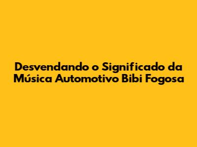 Desvendando O Significado Da Música Automotivo Bibi Fogosa