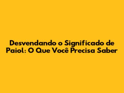 Exploramos as origens da palavra, seus usos em diferentes contextos e algumas curiosidades e expressões relacionadas. Espero que este artigo tenha sido informativo e que você agora se sinta mais familiarizado com o significado de "paiol".