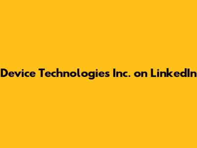 Device Technologies Inc. On LinkedIn
