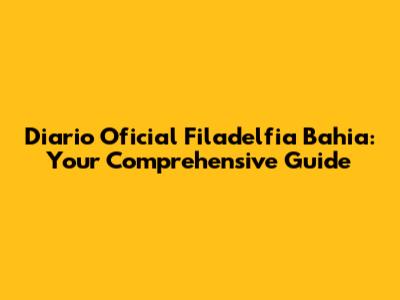 Diario Oficial Filadelfia Bahia: Your Guide