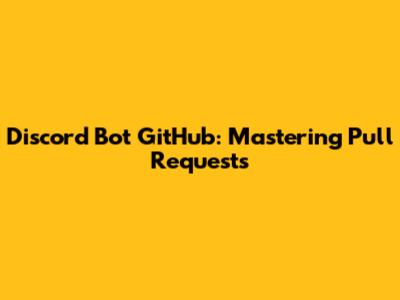 Discord Bot GitHub: Mastering Pull Requests