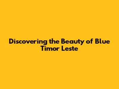 Discovering The Beauty Of Blue Timor Leste