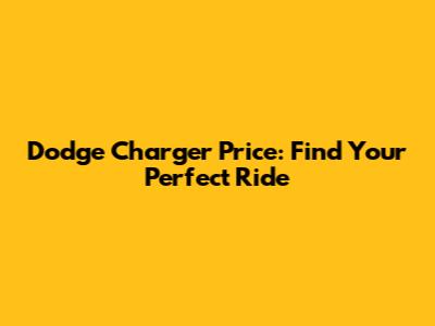 Dodge Charger Price: Find Your Perfect Ride