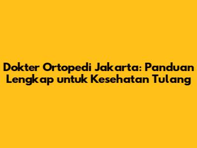 Dokter Ortopedi Jakarta: Panduan Lengkap Untuk Kesehatan Tulang