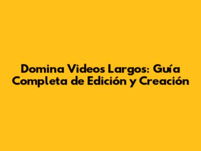 Domina Videos Largos: Guía Completa De Edición Y Creación