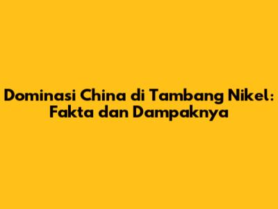 Dominasi China Di Tambang Nikel: Fakta Dan Dampaknya