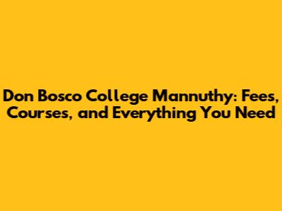 Don Bosco College Mannuthy: Fees, Courses, And Everything You Need
