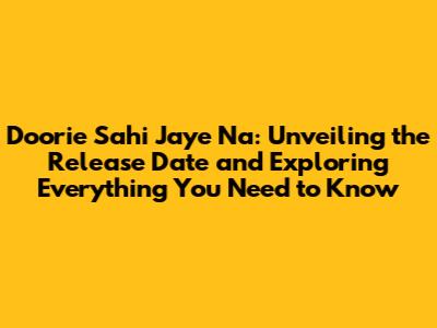 Doorie Sahi Jaye Na: Release Date & Everything You Need To Know