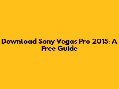 Download Sony Vegas Pro 2015: A Free Guide