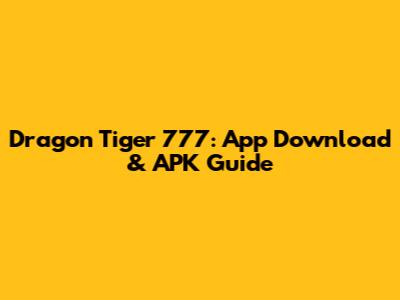 Dragon Tiger 777: App Download & APK Guide
