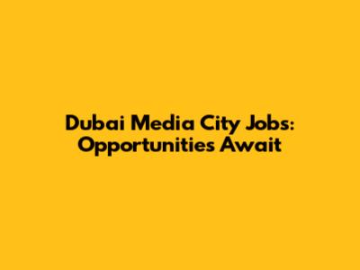 Dubai Media City Jobs: Opportunities Await