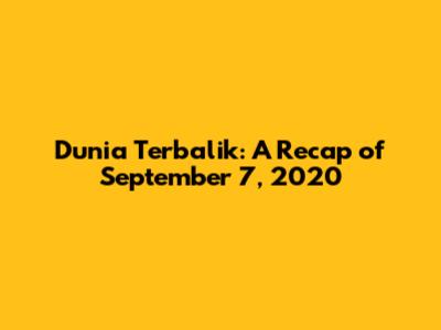 Dunia Terbalik: A Recap Of September 7, 2020