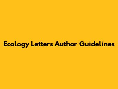 Ecology Letters: Author Guidelines For Publication