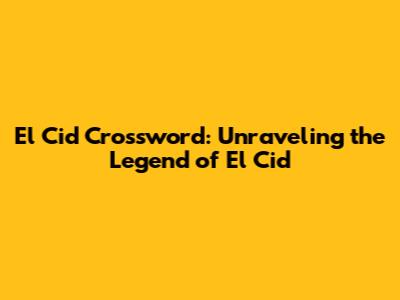 El Cid Crossword: Unraveling The Legend Of El Cid