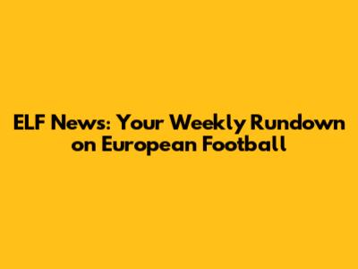 ELF News: Your Weekly Rundown On European Football