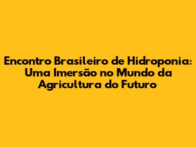 O Encontro Brasileiro de Hidroponia: Um Panorama Geral