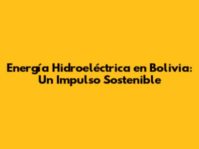 Importancia de la Energía Hidroeléctrica en Bolivia