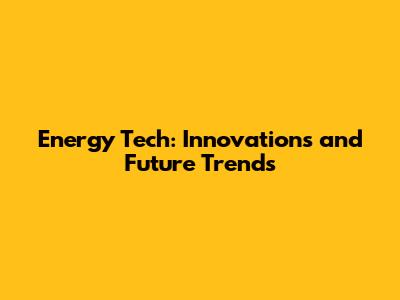 Energy Tech: Innovations And Future Trends