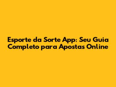 Esporte Da Sorte App: Guia Completo Para Apostas Online