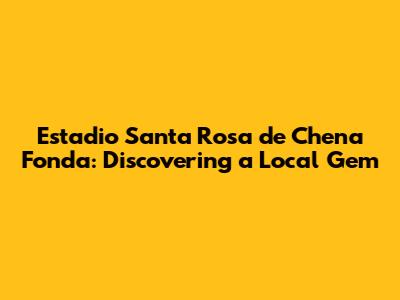 Hey guys! Ever heard of the Estadio Santa Rosa de Chena Fonda? If not, you're in for a treat. This isn't your typical mega-stadium; it's a charming, local spot with a ton of character and a real community vibe. Nestled in the heart of Chena, it’s more than just a place to watch a game; it’s a cultural hub where locals gather, celebrate, and create lasting memories. Let's dive into what makes this place so special.