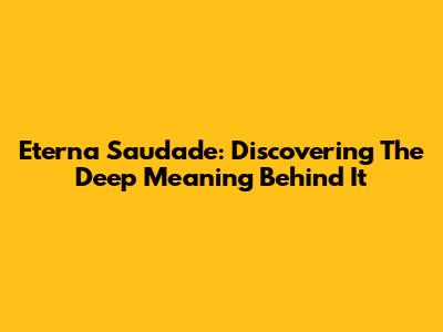 What Exactly is "Eterna Saudade"?