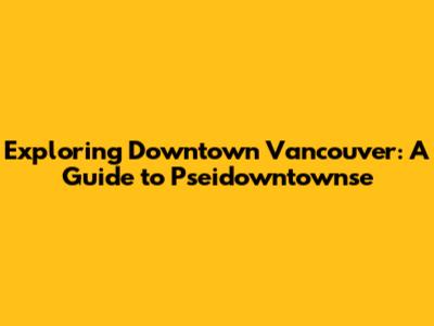 Exploring Downtown Vancouver: A Guide To Pseidowntownse