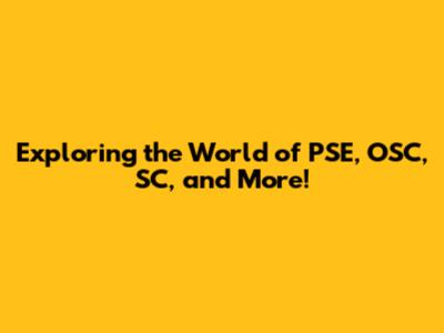 Exploring The World Of PSE, OSC, SC, And More!