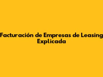 Facturación De Empresas De Leasing Explicada