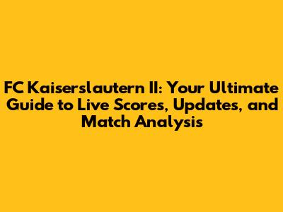 FC Kaiserslautern II: Live Scores, Updates & Match Analysis