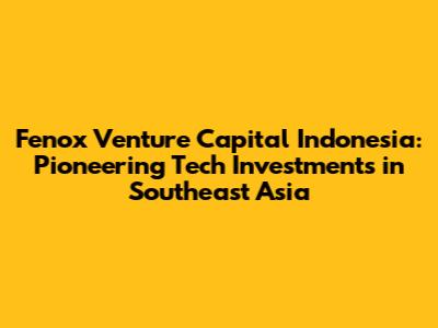 Fenox Venture Capital: Investing In Indonesia's Future