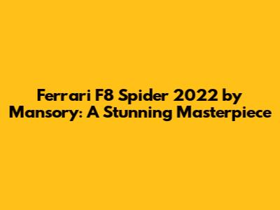 Let's dive into the world of high-performance sports cars, guys! Today, we're checking out the Ferrari F8 Spider 2022 but not just any F8 Spider. This one has been touched by the maestros at Mansory. If you're into cars, you've probably heard of Mansory. They're famous (or maybe infamous, depending on who you ask) for taking already incredible cars and turning them up to eleven. We’re talking about visual modifications, performance enhancements, and an overall audacious approach to automotive customization. The Ferrari F8 Spider is already a stunning piece of machinery straight from the factory, but the Mansory treatment takes it to a whole new level. In this article, we'll break down what makes this collaboration so special, exploring the design tweaks, performance upgrades, and overall impact of the Mansory touch on the F8 Spider. Buckle up, because this is going to be a wild ride!