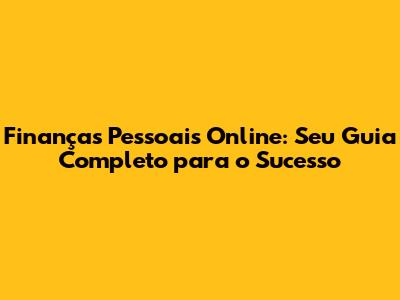 Finanças Pessoais Online: Seu Guia Completo Para O Sucesso