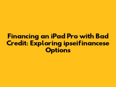 Okay, let's talk specifically about ipseifinancese. To figure out if they can help you finance your iPad Pro with bad credit, we need to understand what they do. Ipseifinancese, presumably, is a financing company – but we'll need to dig deeper to know their specific offerings. Generally, financing companies offer various options such as installment loans, personal loans, or even specific financing plans for electronics.