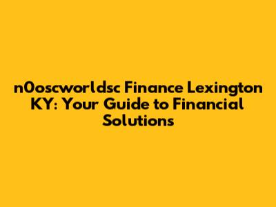 Hey guys! Let's dive into the world of n0oscworldsc finance in Lexington, KY. Whether you're a local resident or planning to move here, understanding your financial options is crucial. We'll break down everything you need to know, from investment opportunities to local financial services. So, buckle up and let's get started!