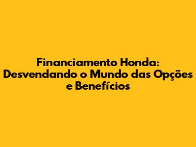 As Melhores Opções de Financiamento Honda: Como Escolher?