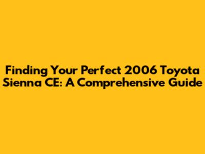 Hey there, car shoppers! If you're on the hunt for a reliable and spacious minivan, the 2006 Toyota Sienna CE might just be the perfect fit for your family. This guide is your ultimate resource, covering everything from where to find these gems to what to look out for when you're checking one out. Let's dive in and get you cruising in comfort and style!