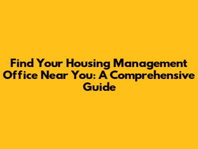 How to Find a Housing Management Office Near You