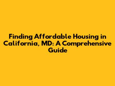 Finding Affordable Housing In California, MD