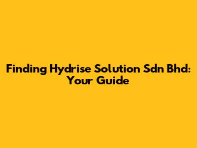 Finding Hydrise Solution Sdn Bhd: Your Guide