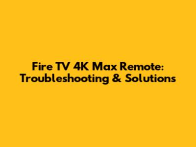 Fire TV 4K Max Remote: Troubleshooting & Solutions
