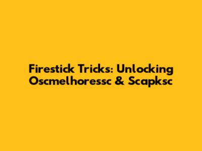Firestick Tricks: Unlocking Oscmelhoressc & Scapksc
